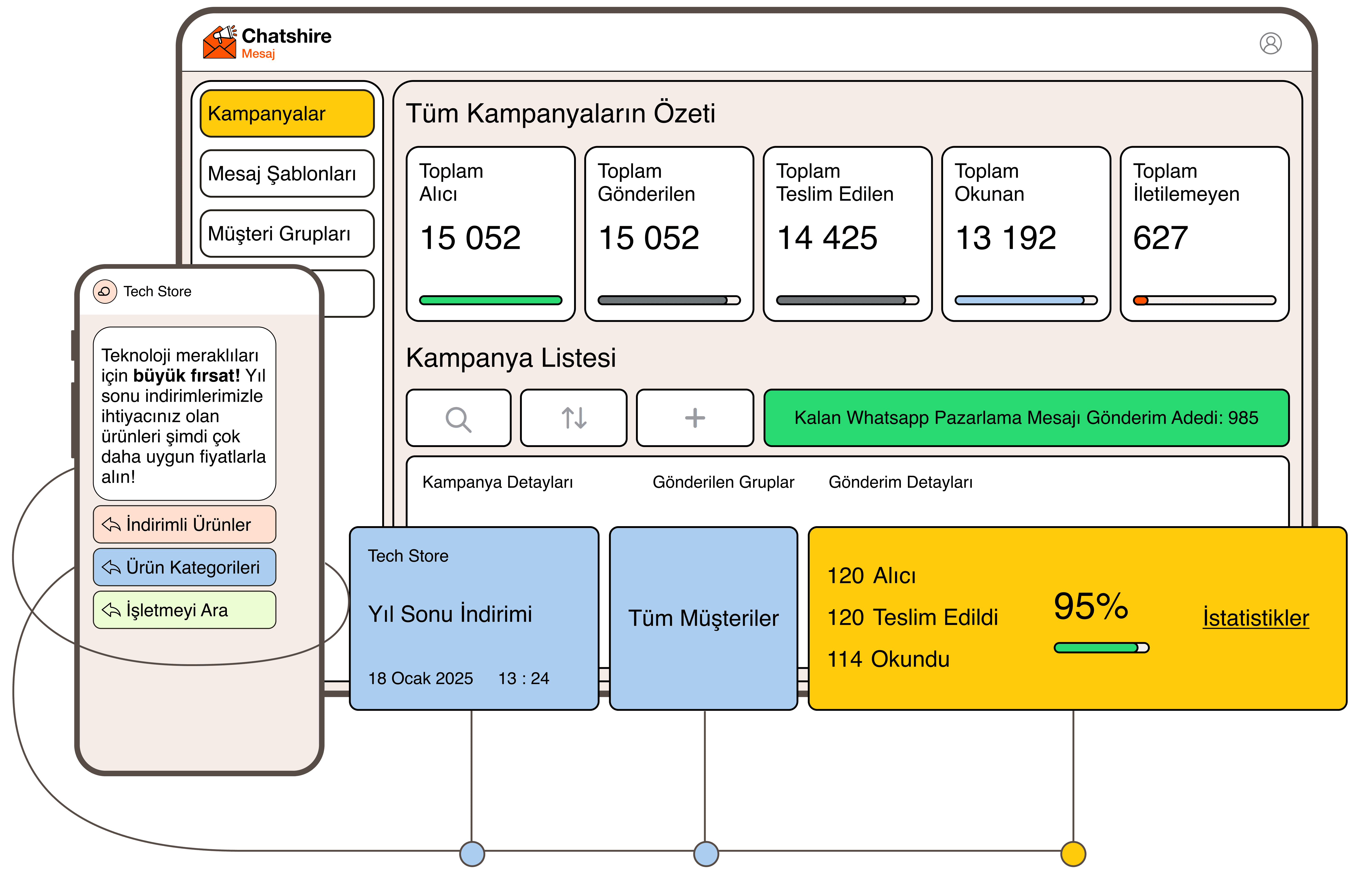 Chatshire Mesaj ile WhatsApp üzerinden %98 açılma oranına sahip özelleştirilmiş pazarlama mesajları gönderin, dönüşüm oranlarınızı artırın ve müşterilerinizle doğrudan bağ kurun.